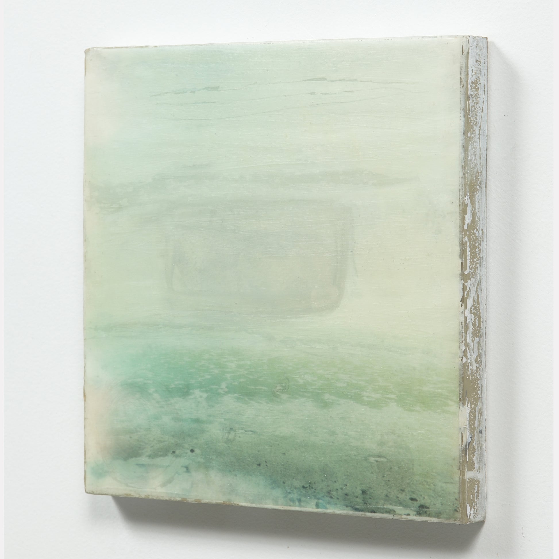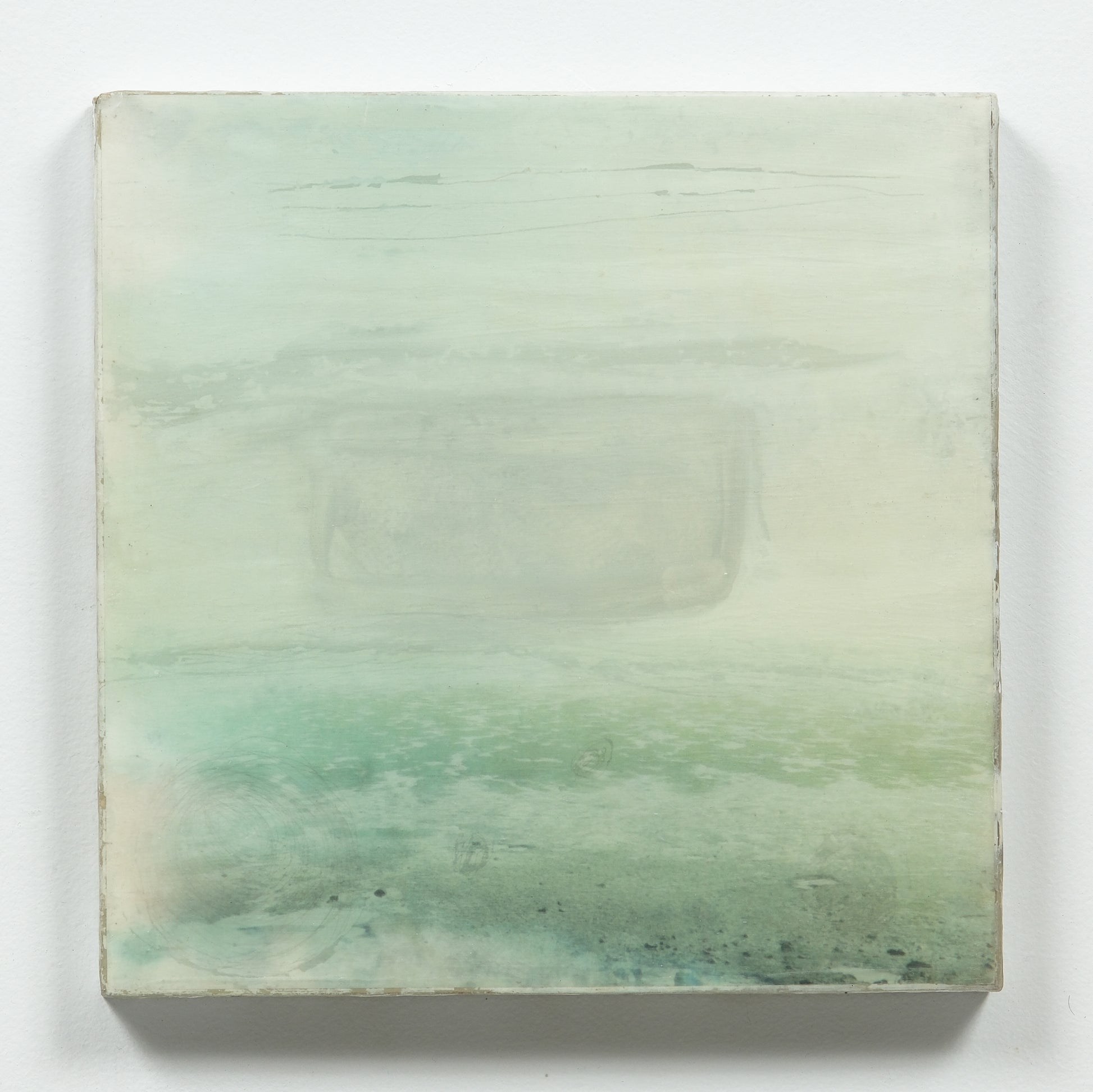 Accent colours include greens and grey. The piece is sealed with resin and finished with cold wax to give it a matte finish. Created in 2023.