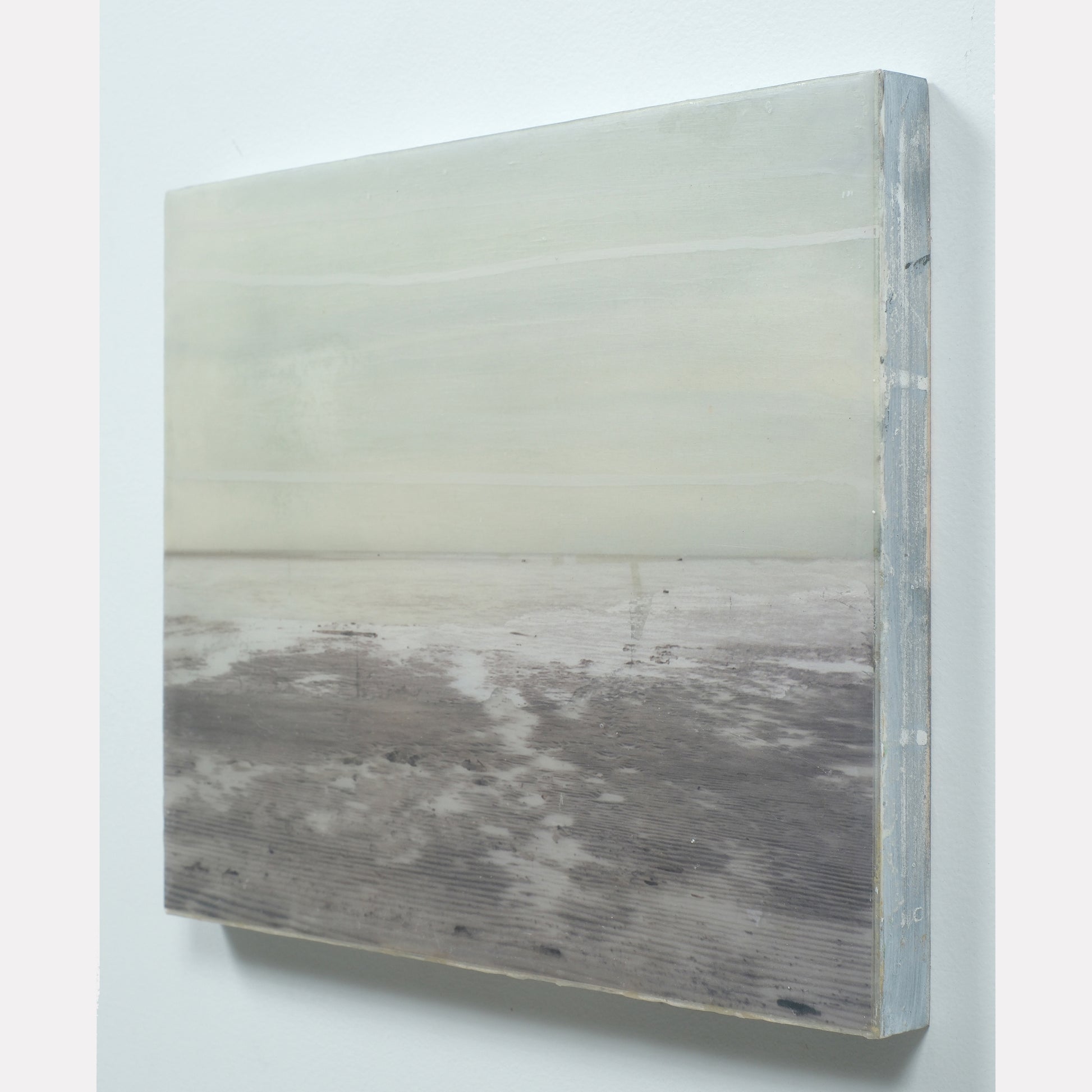 The surface is sealed with a clear, cold wax that gives the piece a soft, matte finish. This technique adds a subtle texture and quiet depth to the work.