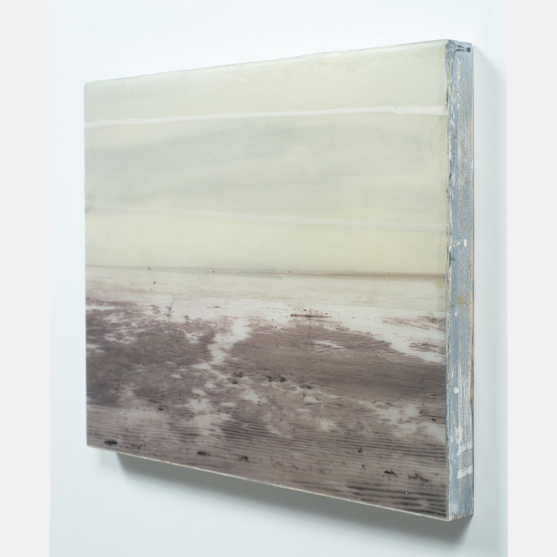 The surface is sealed with a clear, cold wax that gives the piece a soft, matte finish. This technique adds a subtle texture and quiet depth to the work.