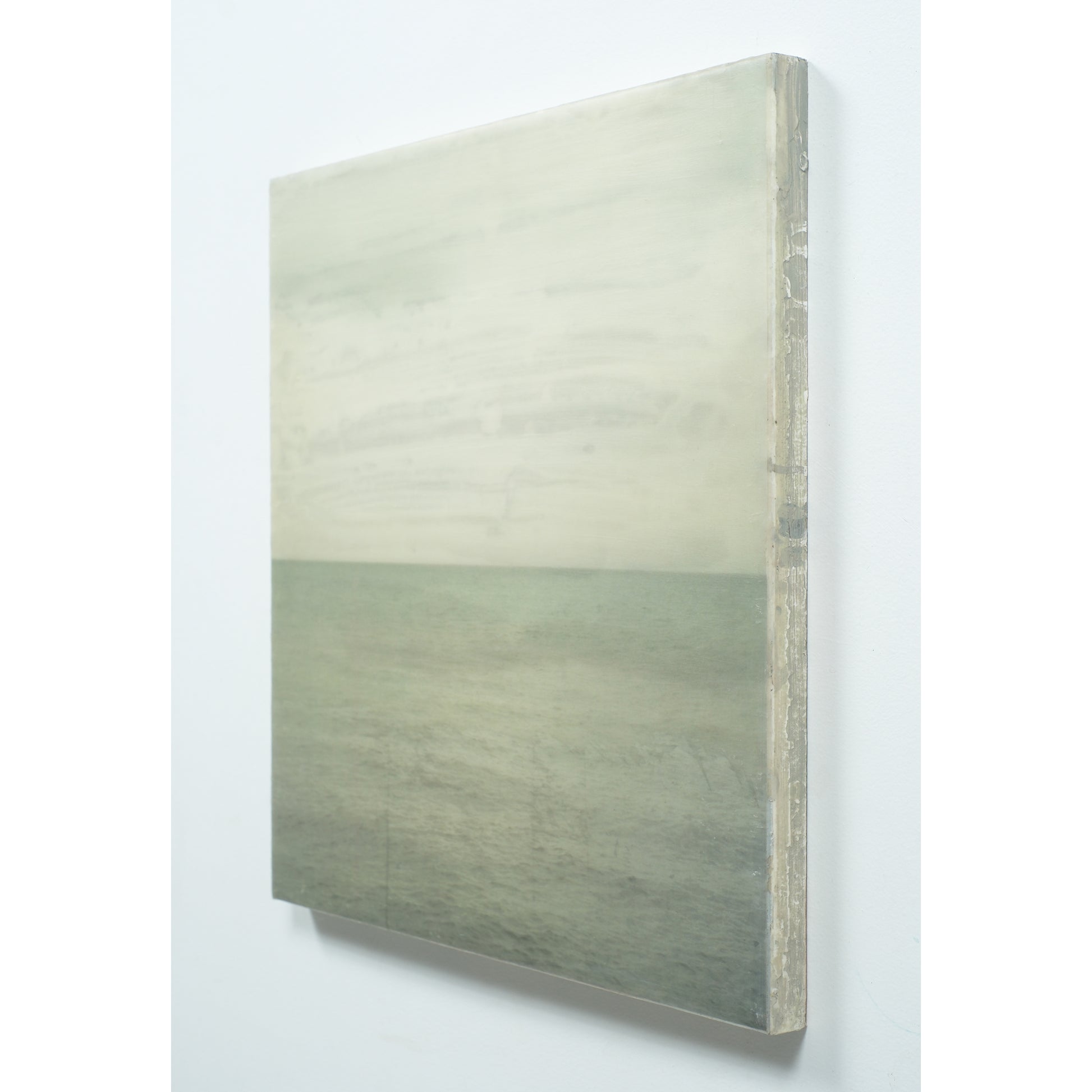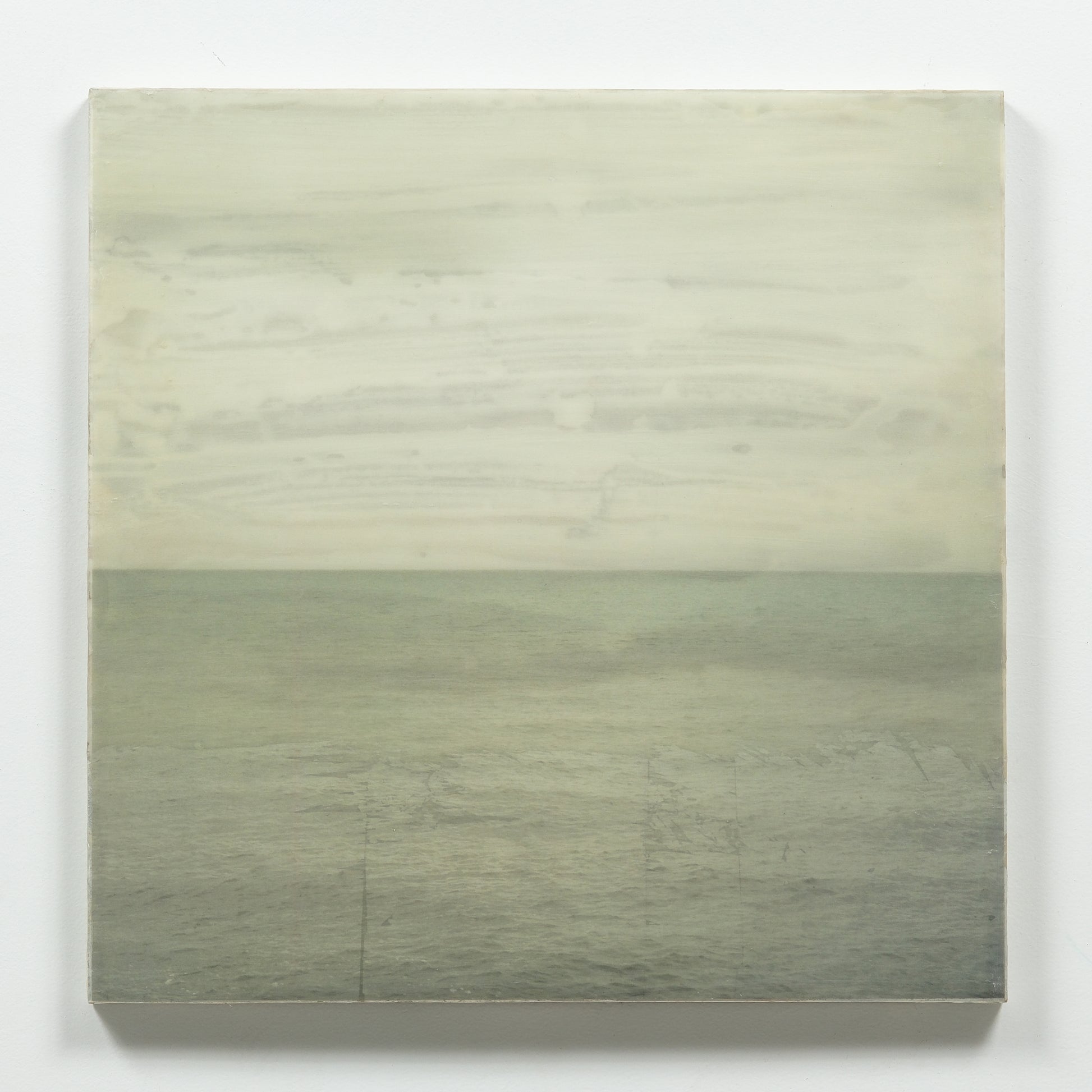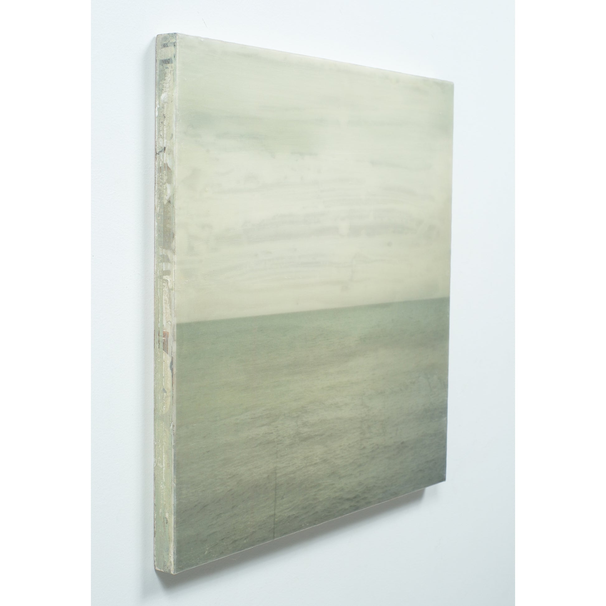 Accent colours include greens and vintage yellow hues. The piece is sealed with resin and finished with cold wax to give it a matte finish. Created in 2021.