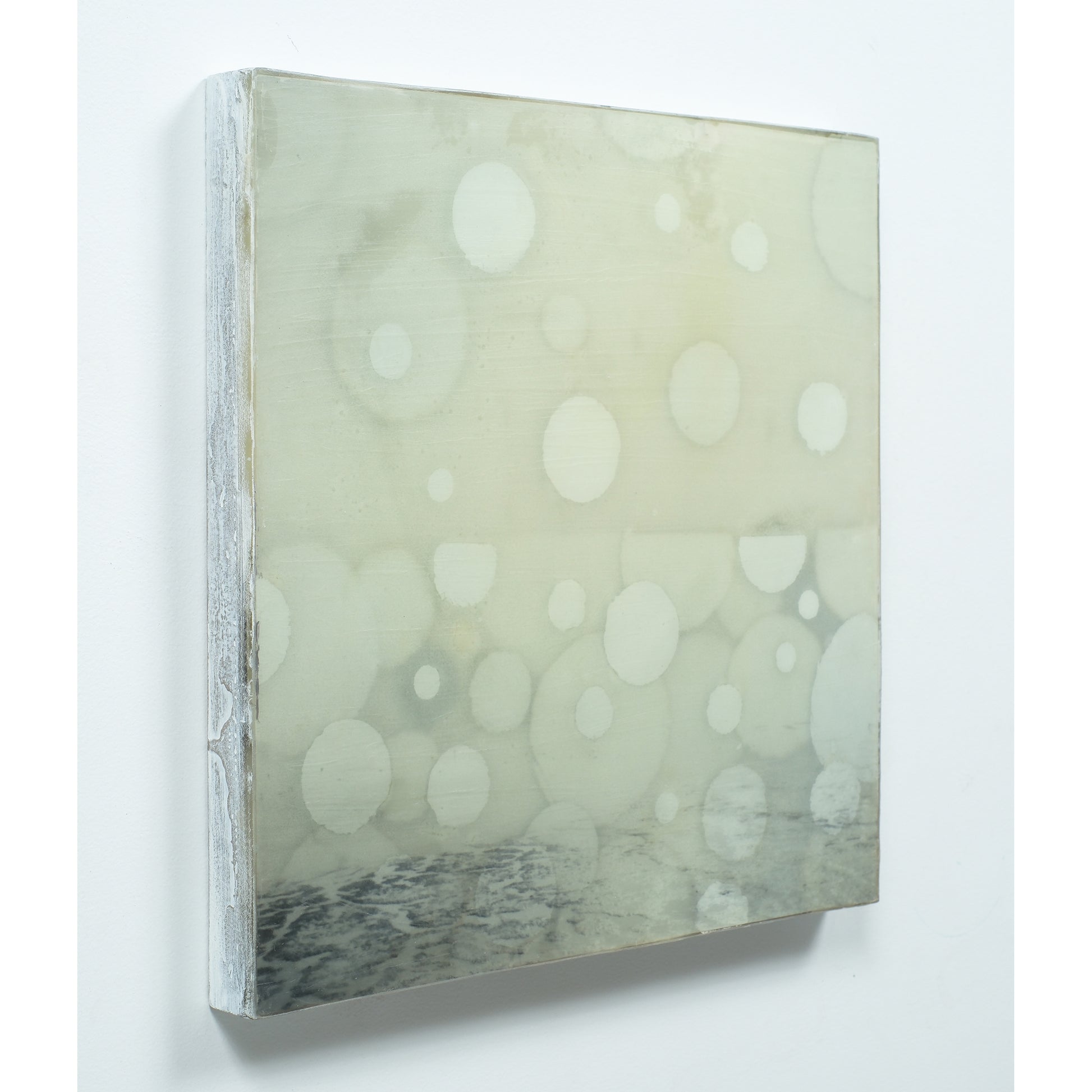 This work is a mixed media photograph. The work has been built up using five layers of resin and silver leaf. The image is shot on medium format film and the location is Iona Beach, Canada.