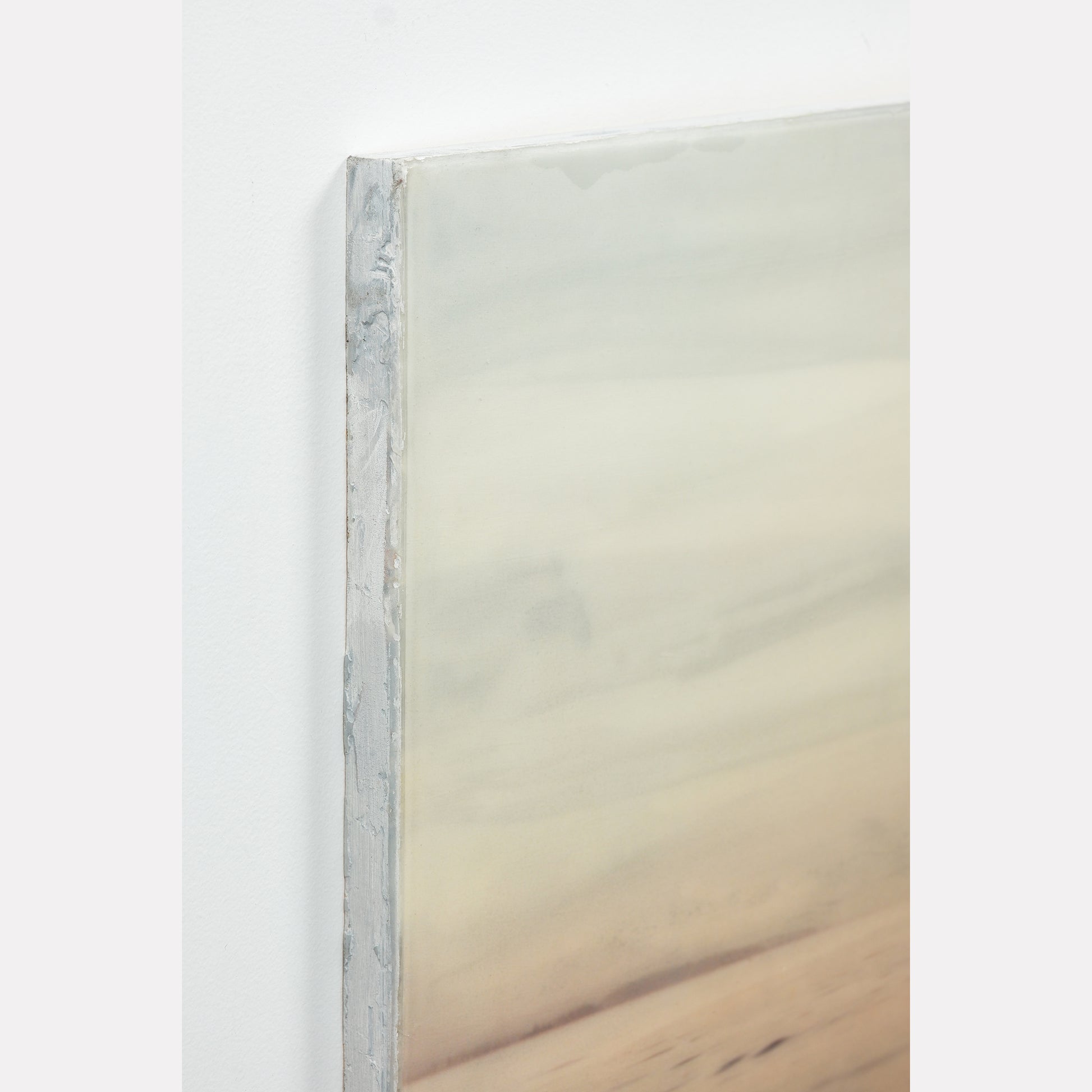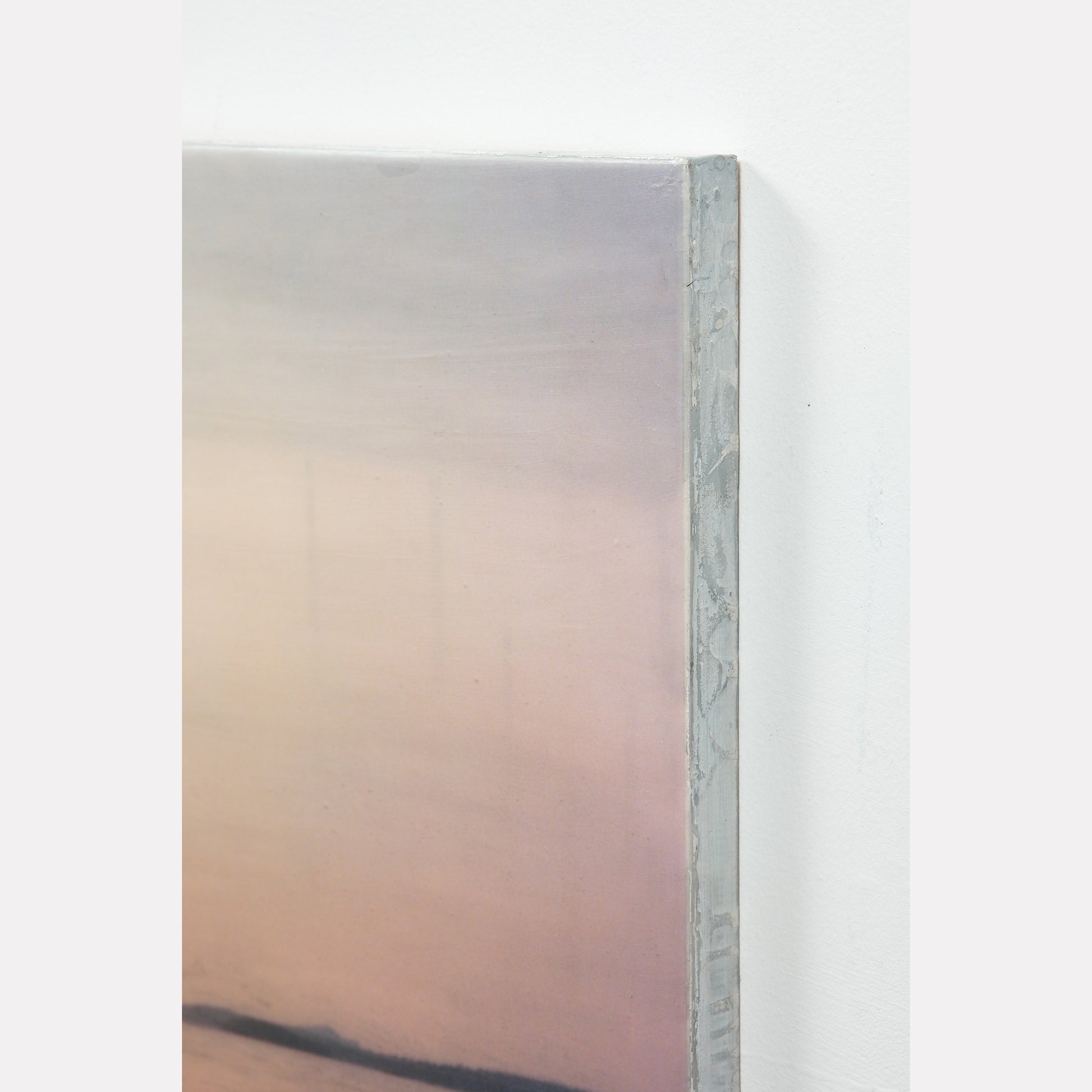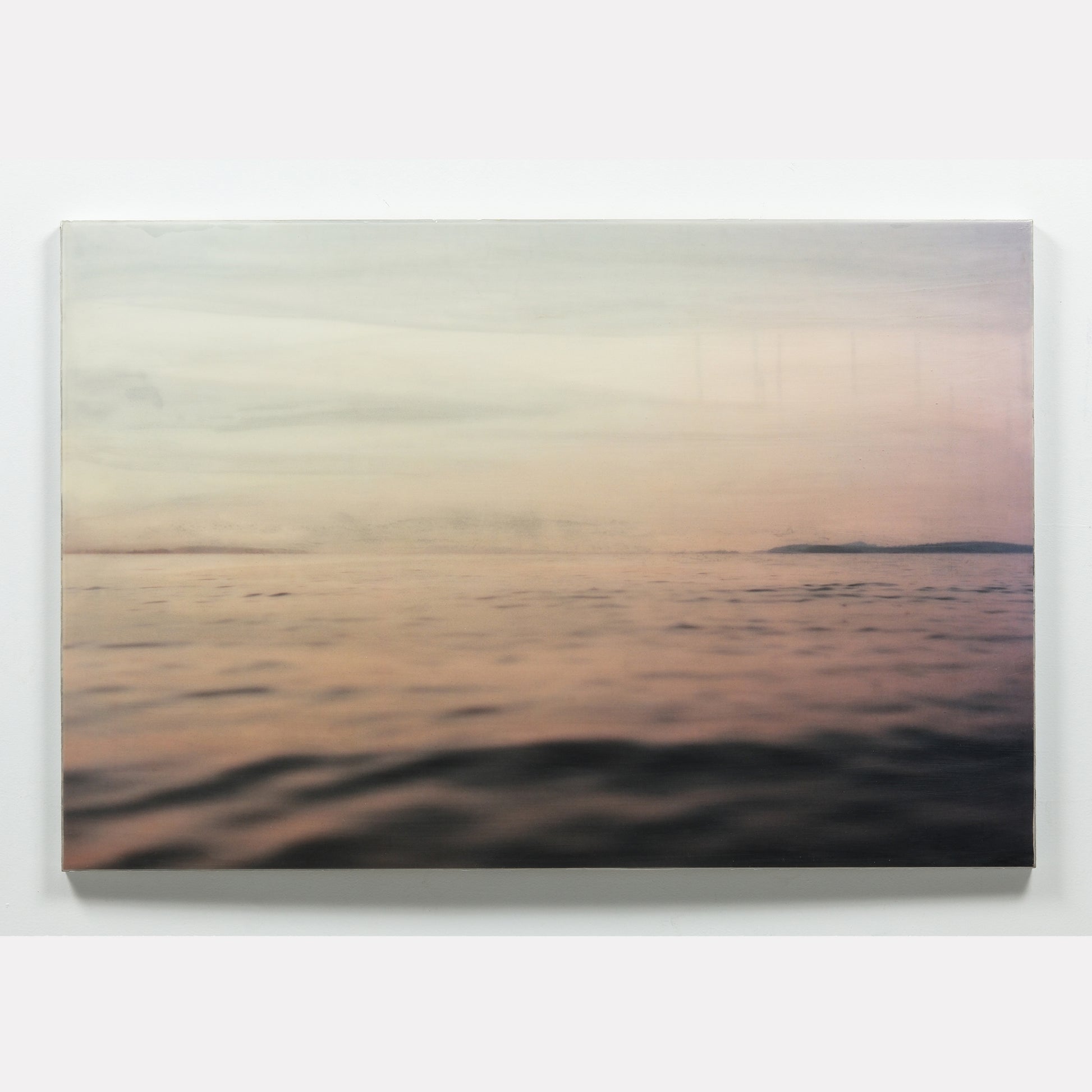 The surface is sealed with a clear, cold wax that gives the piece a soft, matte finish. This technique adds a subtle texture and quiet depth to the work.